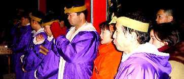 元旦の午前0時を合図に全員八幡神社に参拝し、続けて演奏に入る。
